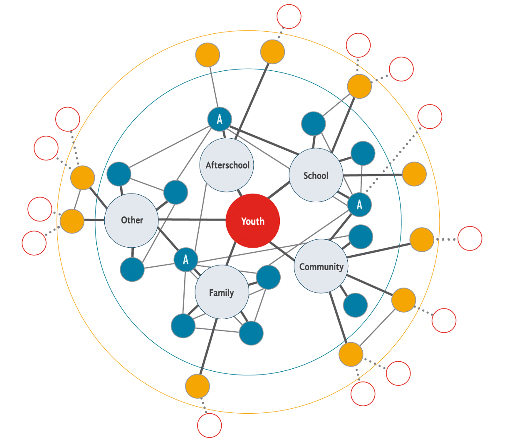 Webs of support are not considered to be diffuse networks. Instead, relationships in a web of support tend to be clustered within contexts (e.g., home, school), and youth need to negotiate those relationships across contexts. The Webs of Support framework by Varga and Zaff (2017, 2018) offers a new way to think about relationships and overall youth development, and can inform how practitioners and policymakers consider and develop the most effective strategies for supporting youth. The Webs of Support framework to describe how youth relate to adults and peers in their lives and how these relationships provide the developmental supports necessary for young people to be on a positive developmental trajectory